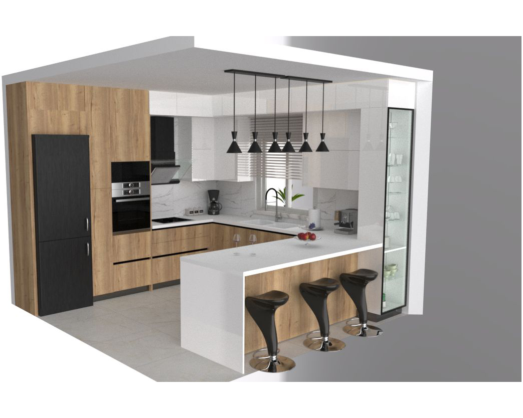 Πριν ξεκινήσει οποιαδήποτε κατασκευή, δίνουμε τη δυνατότητα στους πελάτες μας να δουν την κουζίνα τους όπως ακριβώς θα είναι στον χώρο τους. Μέσα από εξειδικευμένο σχεδιαστικό πρόγραμμα, παρουσιάζουμε ρεαλιστική απεικόνιση της κουζίνας, λαμβάνοντας υπόψη τις πραγματικές διαστάσεις, τα υλικά και τις επιλογές σχεδιασμού.